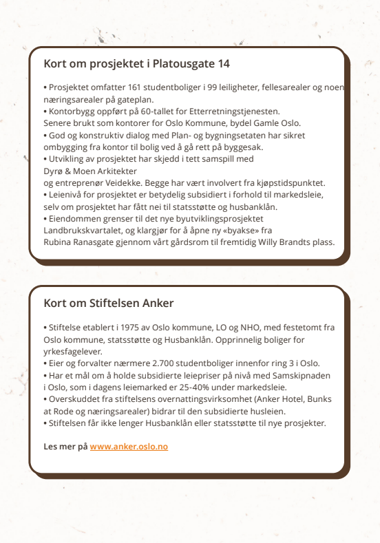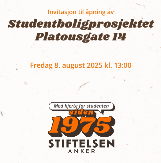 Vi markerer også Stiftelsen Ankers 50-års jubileum, og feirer at vi med det første studentboligprosjektet på Grønland nærmer oss 2 700 billige og gode studentboliger – midt i hjertet av Oslo.
